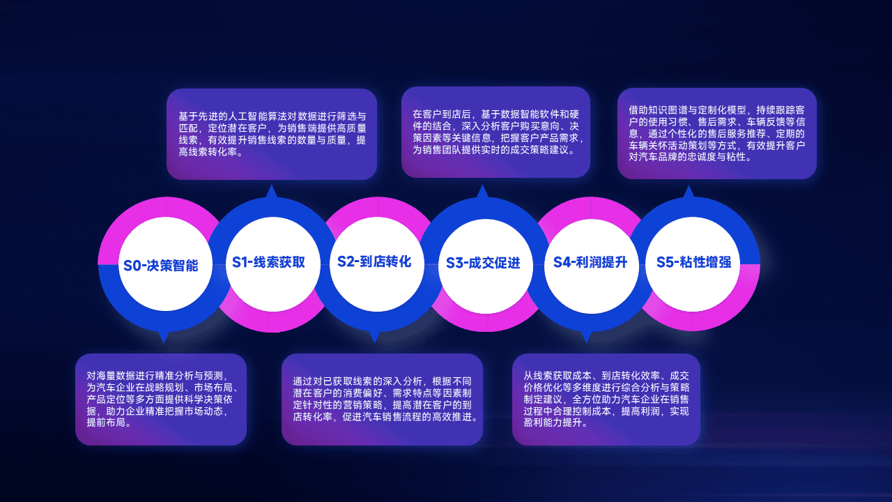 通过拓宽潜在客户来源、、、优化线索分配并提高到店转化率,,以增强销售效率。。同时,,利用线索数据不断优化分析模型,,,有效提升转化率,,,,扩大营销影响力。。